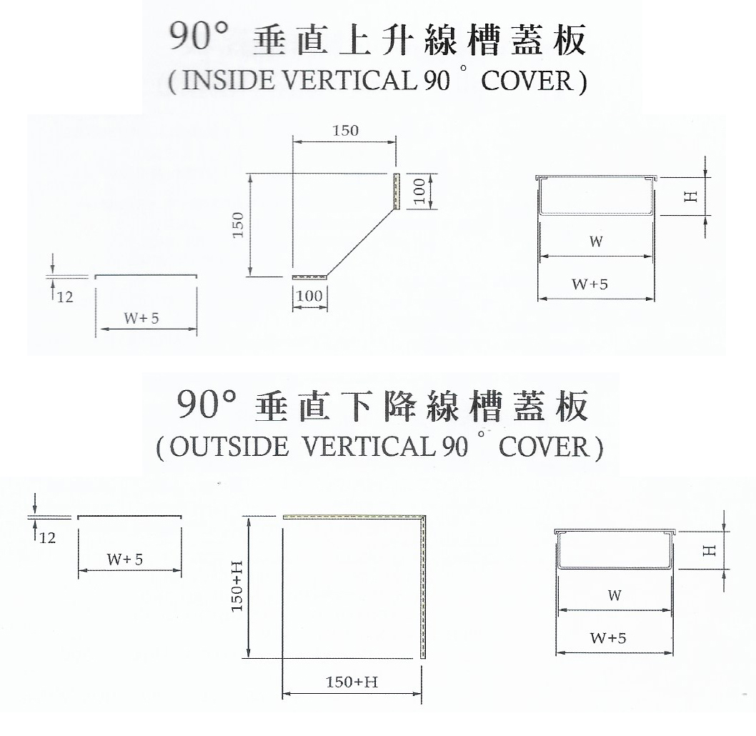 90°垂直上升,垂直下降線槽蓋板(INSIDE VERTICAL 90°,OUTSIDE VERTICAL 90° COVER)